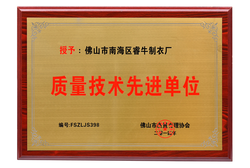 質(zhì)量技術(shù)先進(jìn)單位 -