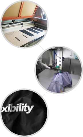 根據(jù)面料特性,仔細(xì)選擇對(duì)應(yīng)的膠條,再由經(jīng)驗(yàn)豐富的過膠師傅測(cè)試面布與膠條的吻合溫度,杜絕水洗脫膠,起泡等問題。
