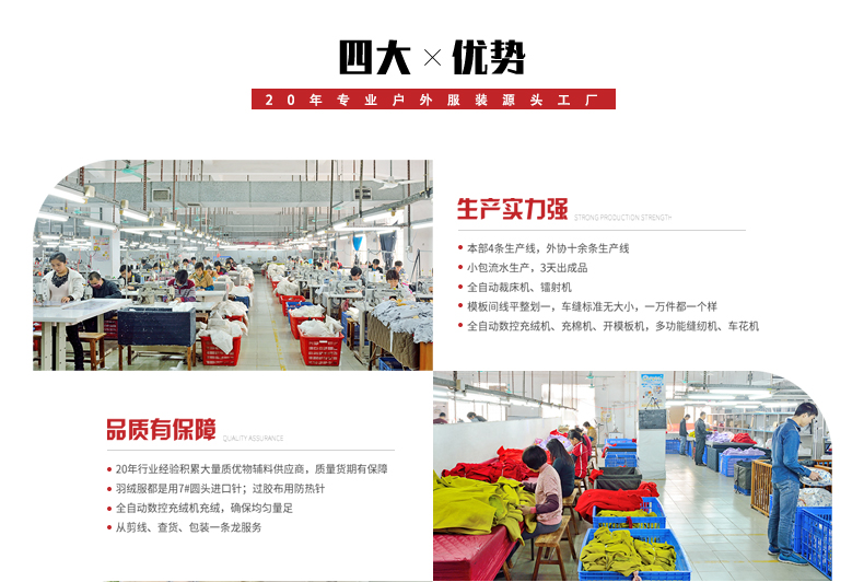 定制沖鋒衣加工生產(chǎn)重要的是供貨期是否能保證,訂單數(shù)量限制無論是對于沖鋒衣批發(fā)商,還是對于企事業(yè)單位而言,都不可能是什么好事情。能做到“大訂單不含糊,小訂單不馬虎”的定制廠家,才能真正讓人放心!