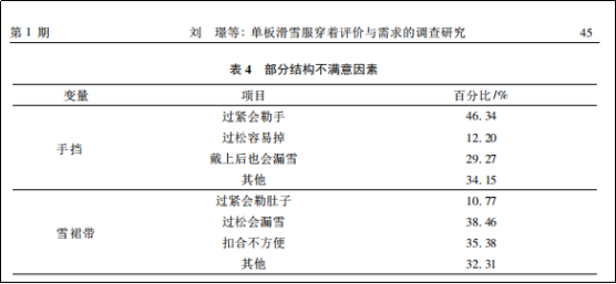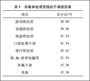接下來作者又對消費者穿著單板滑雪服不滿意因素進行調(diào)查,結果如下。