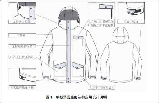 并且在最后作者還根據(jù)調(diào)查結果,總結出受訪者喜歡的最合理滑雪服款式結構圖。此款單板滑雪服是以功能應用為主的設計,不增加任何裝飾性結構,目的是減輕滑雪服自重,同時滿足滑雪中一切使用需求,兼具防風散熱與保暖性,有保證穿脫便捷性。