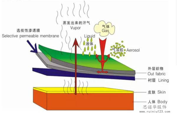 一般是指在布料底面做膠底,分coating和lamination兩種,coating就是常說的涂層,lamination是復(fù)合一層防水料在后面。這個才是真正的防水!一般真正的沖鋒衣布料都是會做噴刷防水涂料+后整工序做防水透氣膜的處理,做到對應(yīng)的防水指數(shù)。而兩層工藝都做了的,用水龍頭的水直接沖刷布料的表面,底面還是保持著干爽的。
