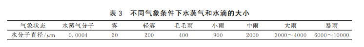 動態(tài)防水性能檢驗主要是評價沖鋒衣面料在運動狀態(tài)中的拒水性。我們可以根據不同氣候條件下水蒸氣、水滴大小來設置實驗。其中邦迪斯門淋雨法可以模擬不同氣候中的雨滴大小和雨量,具體見下圖,但也沒有檢驗標準。