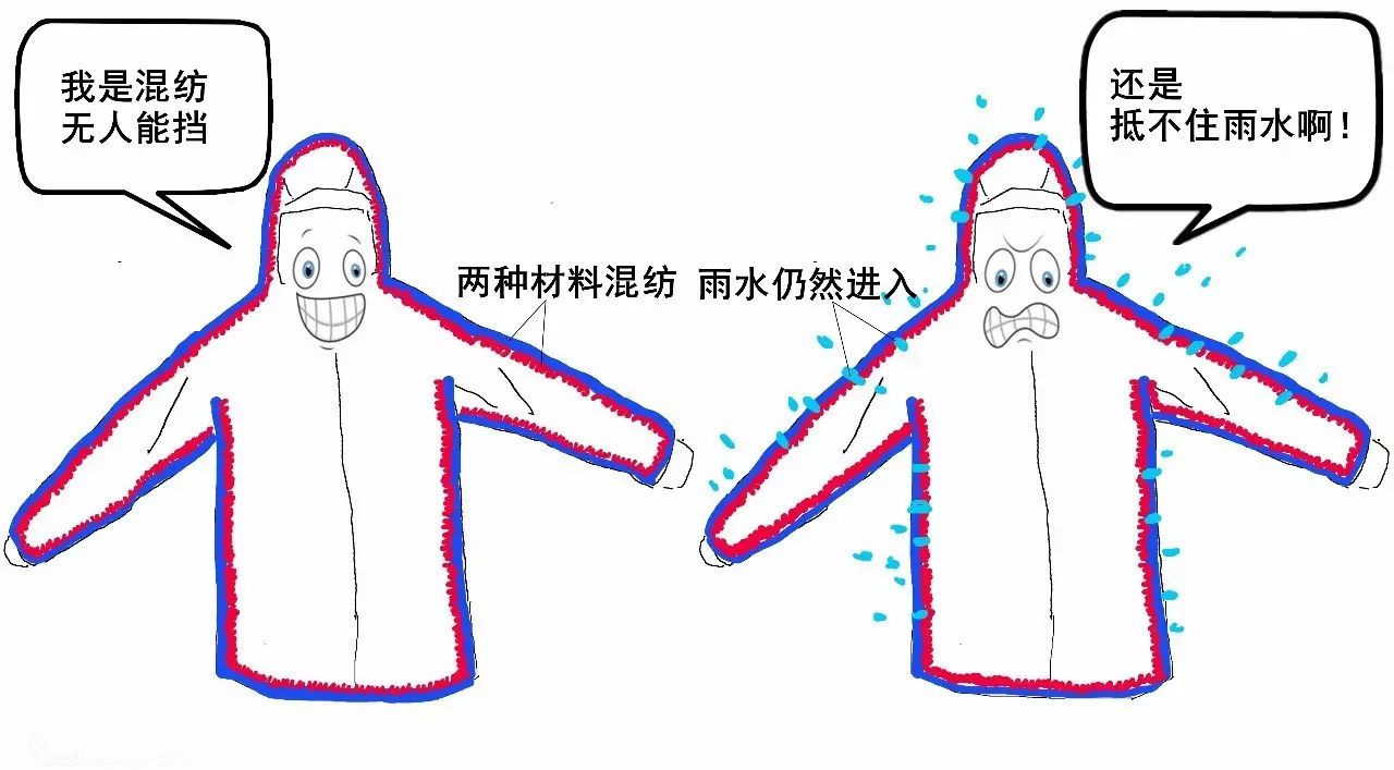 混紡不能實現(xiàn)完全的防水透氣。