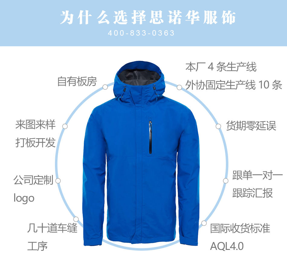 思諾華服飾—沖鋒衣生產(chǎn)廠家貼牌代工單層壓膠沖鋒衣